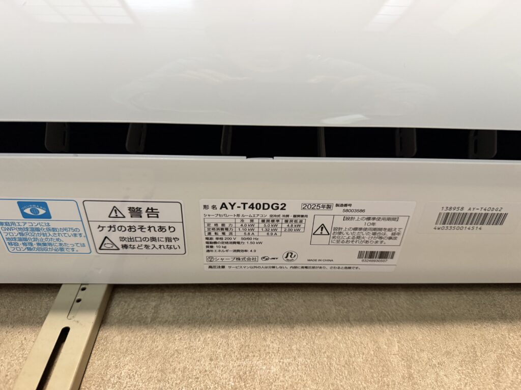 ・2025年製のエアコン(4.0Kw200V)を設置。