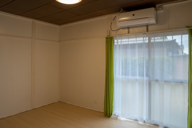 シャーププラズマクラスターのエアコンがついていて、大きいサイズにしてあるのでキッチンや4.5畳洋室にも届くと思います。
